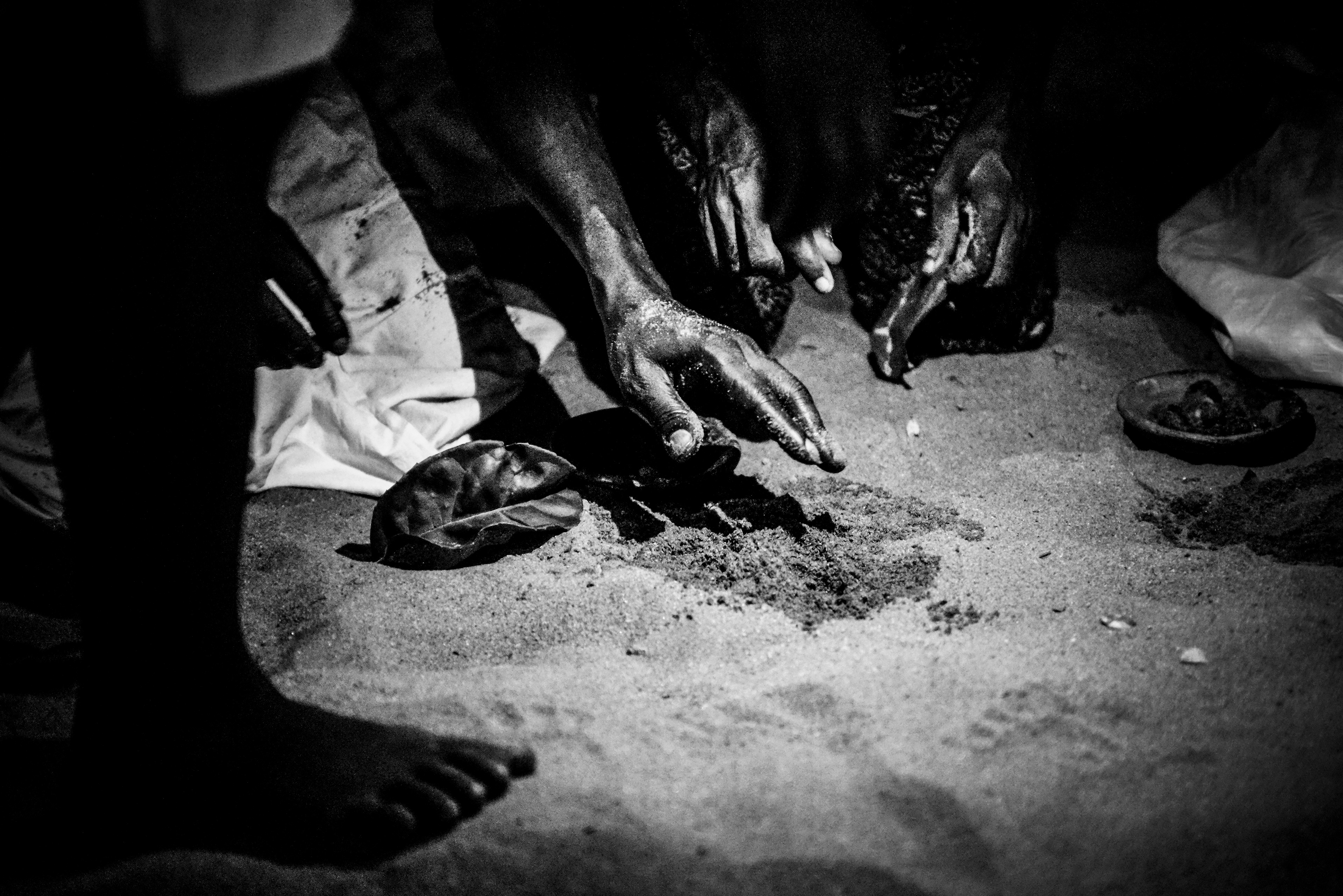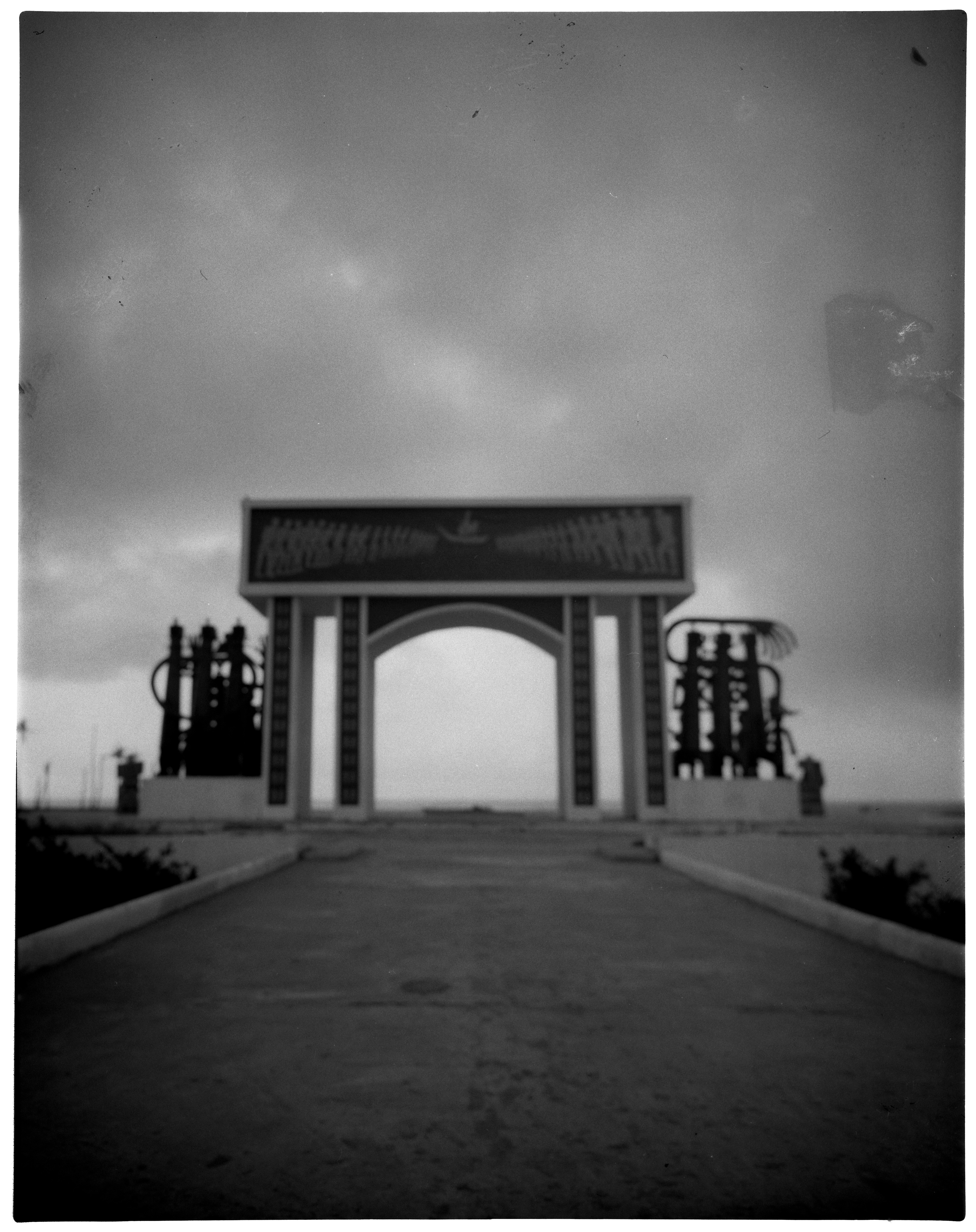 Ce qui est invisible Vendredi 25 octobre 2024, en pleine nuit, j’ arrive au Bénin, premiers pas dans ce pays ; il est difficile de trouver les mots pour décrire ce que je ressens. Je plonge dans un voyage intérieur au cours duquel j’ai la sensation d’être entre deux univers, je me retrouve dans d’autres dimensions, je vois ce que je ne ne connais pas. Immergé dans la culture béninoise, ses rituels vaudous, ses offrandes, ses cérémonies je dois m’adapter ; comment photographier, où me placer, quelle posture avoir…moi, blanc, occidental, athée. Il me semble reconnaître quelques gestes, ceux que Sophie a fait au début du projet, ici à Pau. Ils viennent de là, c’est leur source. Je réalise beaucoup de photographies, je filme beaucoup, j’ enregistre des sons, j’observe, je ressens. Je ressens ces scènes à fleur de corps et de peau, en quelques jours je sens que je vacille émotionnellement, quelque chose se joue en moi, rien de précis pour l’instant. Au fil des cérémonies, au fil des jours, des rencontres , tout s’intensifie, les vibrations sont plus présentes et plus fortes, quelque chose m’appelle , j’ai bien une idée mais je ne l’accepte pas. Samedi 2 novembre 2024 à l’aube je me réveille , toujours au même moment depuis dix ans. J’ai du mal à me lever, du mal à penser , pourtant à un moment je trouve la force de le faire, je prends mon appareil fait maison car je sens que j’ai besoin de l’utiliser. Je marche, je marche…je marche en direction de la plage, le son des vagues m’appelle, la lumière du jour à peine levé m’appelle. Il y a un vent doux, très peu de gens, pas de musique, pas de chant ; je marche vers la Porte du Non Retour, je m’arrête je prends l’horizon en photo, je continue. J’arrive à la porte, je me tiens face à elle, je ne la traverse pas encore. Au même moment arrive un chien, il n’y a que nous. Il vient à côté de moi, pas trop loin, pas trop proche, dans un entre-deux en quelque sorte. On s’assoit en même temps. Il se met de profil, comme un sphinx, il semble m’ignorer, il est face à l’océan , je suis face à l’océan, je réalise une photo de lui. Nous nous levons en même temps, il part d’un côté, moi de l’autre…je traverse la porte. Je marche quelques mètres, je trouve cela étrange, je m’arrête, je me retourne, il n’est plus là évidemment. La présence de ce chien, cette porte, cette solitude, à cette date si douloureuse pour moi, m’ invite à y trouver des signes, un dialogue avec une matière qui n’est plus celle de la raison. Ce travail est une exploration visuelle et plastique, il questionne comment rendre visible ce que je ne peux pas représenter, de quelle manière se rencontrent une expérience spirituelle et mon histoire personnelle, un chemin, un parcours initiatique que j’ai vécu au Bénin.